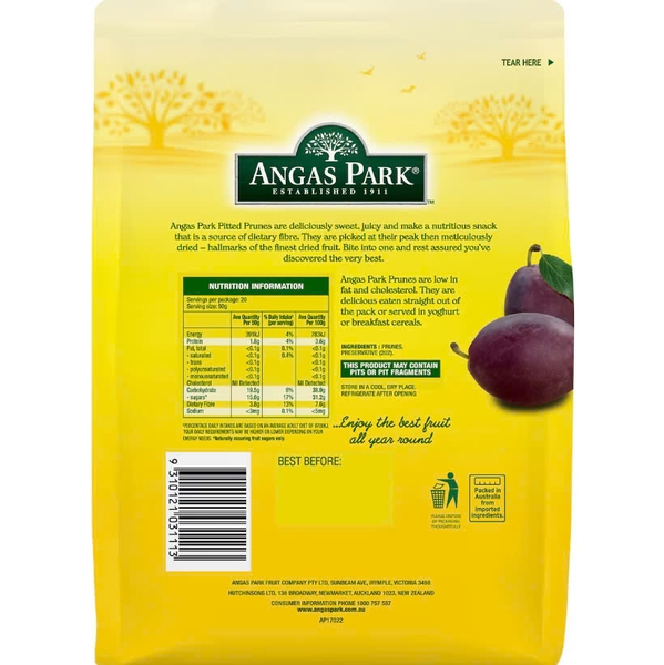 Thành phần Mứt mận Úc Angas Park Prunes Pitted Resealable