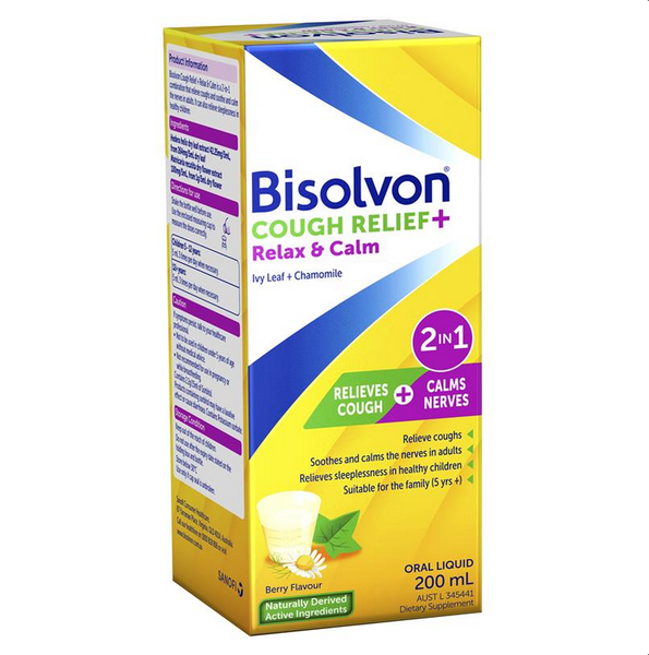 Bisolvon Cough Relief + Relax & Calm là giải pháp tự nhiên, an toàn và tiện lợi để chăm sóc sức khỏe hô hấp và tinh thần cho cả gia đình. Sản phẩm không chỉ giúp giảm ho mà còn mang lại sự thư giãn, cải thiện giấc ngủ với công thức lành tính, không chứa chất gây hại. Hãy để Bisolvon trở thành người bạn đồng hành đáng tin cậy trong việc bảo vệ sức khỏe của bạn và người thân!