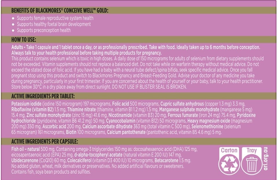 Thành phần viên uống tăng khả năng thụ thai Blackmores Conceive Well Gold