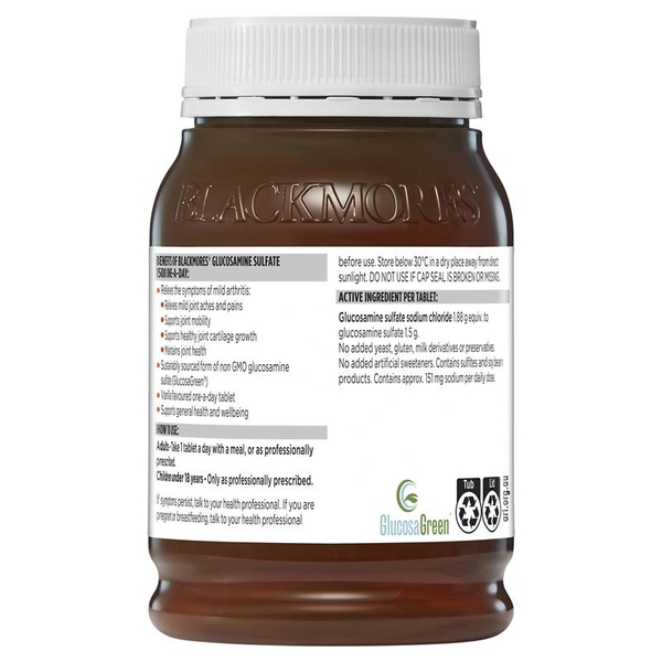 - Bổ sung thêm viên uống bổ sung xương khớp Blackmores Glucosamine 1500mg giúp tái tạo, phục hồi và duy trì chức năng của sụn khớp và các dịch nhầy bao quanh khớp.