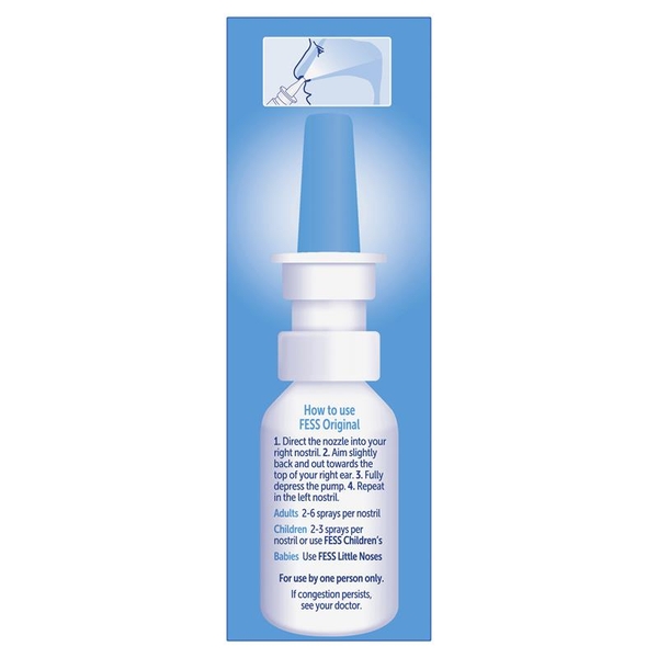 Fess Original Nasal Spray là một loại nước muối xịt mũi không dùng thuốc có tác dụng làm loãng dịch mũi từ đó giảm nghẹt mũi do viêm xoang, sốt khô và cảm lạnh.