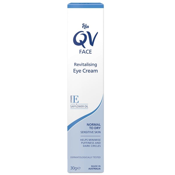 QV Face Revitalising Eye Cream có kết cấu mịn màng, nhẹ nhàng, phù hợp cho cả da khô và da nhạy cảm. Sản phẩm đã được kiểm nghiệm da liễu và nhãn khoa, không chứa hương liệu, màu sắc, lanolin và propylene glycol, đảm bảo an toàn cho vùng da nhạy cảm quanh mắt. Sản phẩm giúp ngăn ngừa mất độ ẩm vào ban đêm, duy trì làn da mềm mại và đàn hồi.