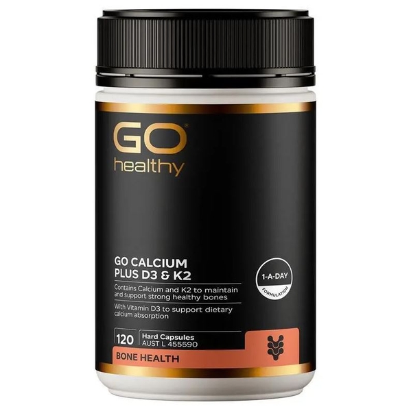 Viên uống bổ sung canxi GO Healthy Calcium Plus D3 & K2 là sự kết hợp hoàn hảo của Canxi, Vitamin D3 và Vitamin K2, giúp tăng cường khả năng hấp thụ và duy trì sức khỏe xương chắc khỏe. Mỗi viên chứa 500mg canxi tự nhiên cùng với Vitamin K2 và D3 để đảm bảo canxi được hấp thụ tối đa vào xương, giúp xương chắc khỏe và giảm thiểu nguy cơ gãy xương.