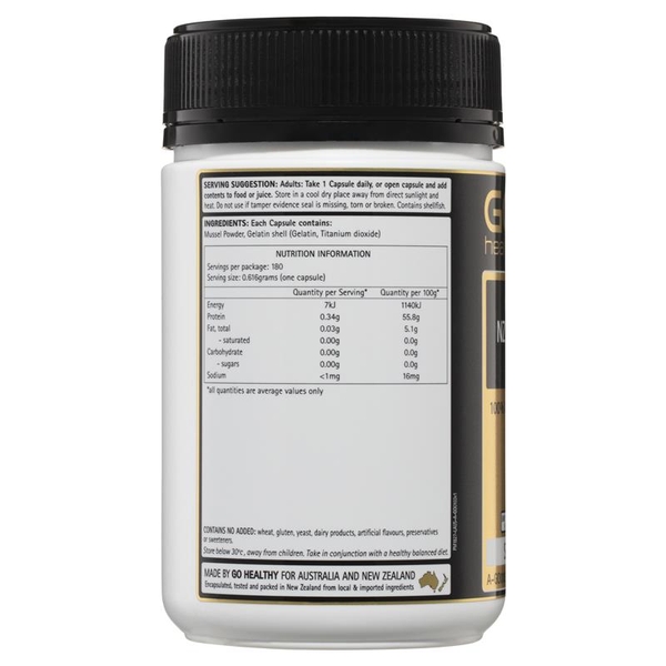 - 100% vẹm xanh New Zealand: Sản phẩm được chiết xuất hoàn toàn từ vẹm xanh nguyên chất, mang lại nguồn dinh dưỡng tự nhiên hỗ trợ sức khỏe.