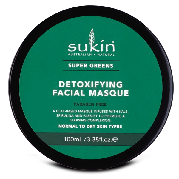 Mặt nạ đất sét thanh lọc da Sukin Super Greens Detoxifying Clay Masque có chứa tinh dầu cải xoắn, tảo xoắn spirulina và mùi tây, cho bạn một làn da sạch hoàn hảo, khoẻ mạnh rạng rỡ sau mỗi lần sử dụng.