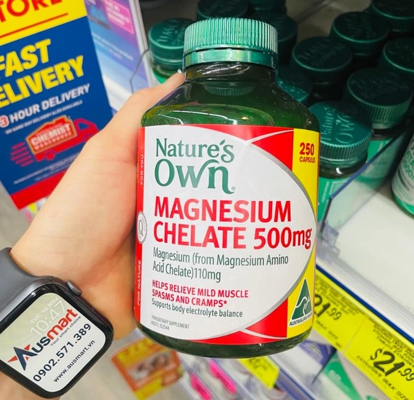 Viên uống bổ sung Magie Nature's Own Magnesium Chelate 500mg là một trong số đó. Magie Nature's Own Magnesium giúp cung cấp hàm lượng Magie tự nhiên cho cơ thể giúp tăng cường sức khoẻ cơ bắp, làm giảm căng thẳng mệt mỏi cho cơ và giảm chuột rút.