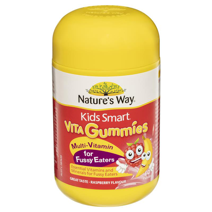 Kẹo vitamin tổng hợp cho bé biếng ăn Nature's Way Kids Smart Vita Gummies Multi Vitamin for Fussy Eaters với hương vị trái cây thơm ngon có công thức đặc biệt gồm các loại vitamin, khoáng chất và chất xơ từ rau củ quả cần thiết giúp tăng cường hệ tiêu hóa của bé tốt hơn, kích thích bé ăn ngon, tăng hấp thụ dưỡng chất và hỗ trợ hệ miễn dịch, phát triển toàn diện về thể chất và tinh thần cho trẻ.