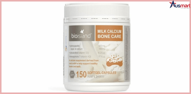 Tham khảo: Viên sữa bổ sung canxi Bio Island Milk Calcium Bone Care 150 viên giúp chăm sóc sức khỏe của xương và răng bằng cách cung cấp canxi, vitamin d3, vitamin K2 từ chiết suất sữa bò nguyên chất.