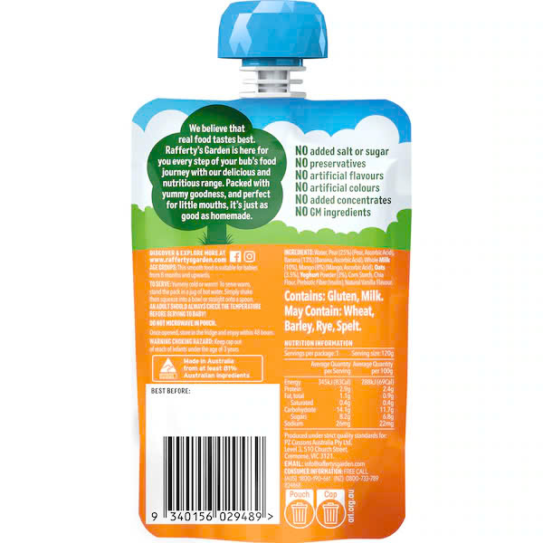 Thành phần Sữa chua Rafferty's Garden Mango & Vanilla Yoghurt Brekkie cho bé của Úc