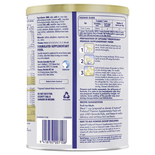 Thành phần Sữa Aptamil Úc số 4 Profutura Supplementary Food