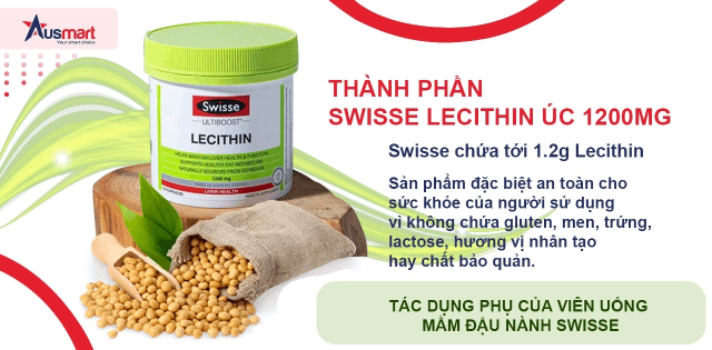 Tương tự như nhãn hiệu Healthy Care, lecithin trong Swisse Lecithin Soybean Sprout 1200mg có nguồn gốc từ đậu nành. Các tác dụng phụ tiềm ẩn tương tự như các vấn đề về tiêu hóa nêu trên có thể xảy ra ở một số cá nhân. Vì nhãn hiệu Swisse chỉ ra rằng không có đường sữa, gluten, men, trứng, màu nhân tạo và hương vị nhân tạo, điều này làm giảm khả năng xảy ra tác dụng phụ liên quan đến các thành phần cụ thể này.