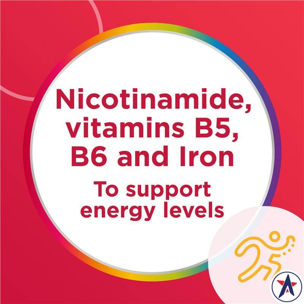 - Hỗ trợ năng lượng: Nicotinamide, vitamin B5, B6 và sắt giúp hỗ trợ cung cấp năng lượng.